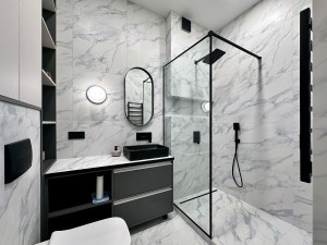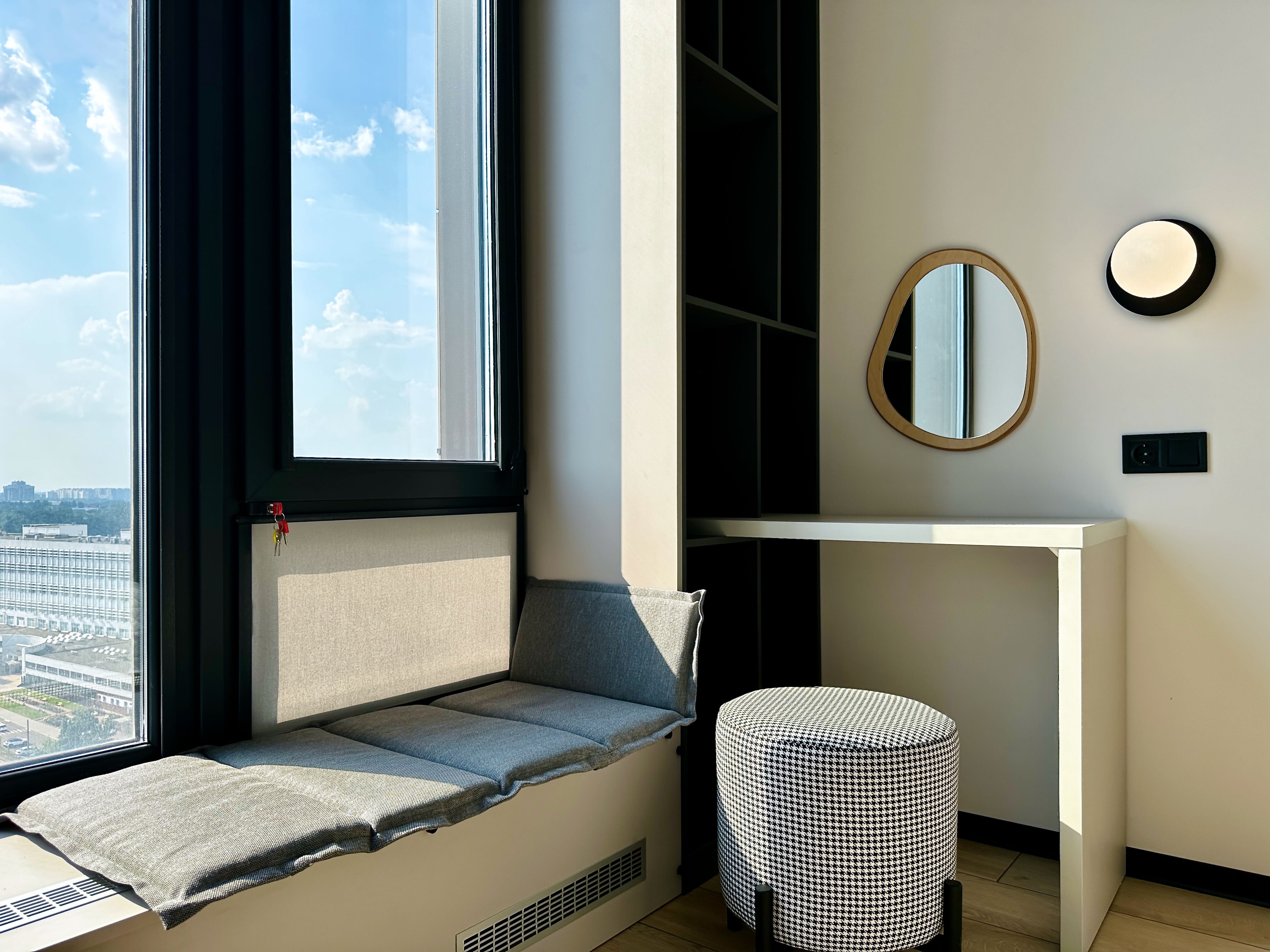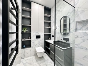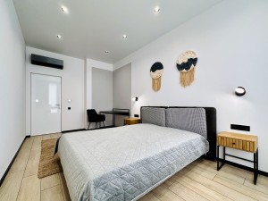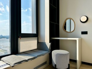 • 18/24-пов., Загальна площа 47кв.м., спальня з робочою зоною та столиком для макіяжу 16кв.м., функціональна кухня-вітальня 24кв.м., де багато місць для зберігання. Також є гардеробна кімната та просторий санвузол з душовою.